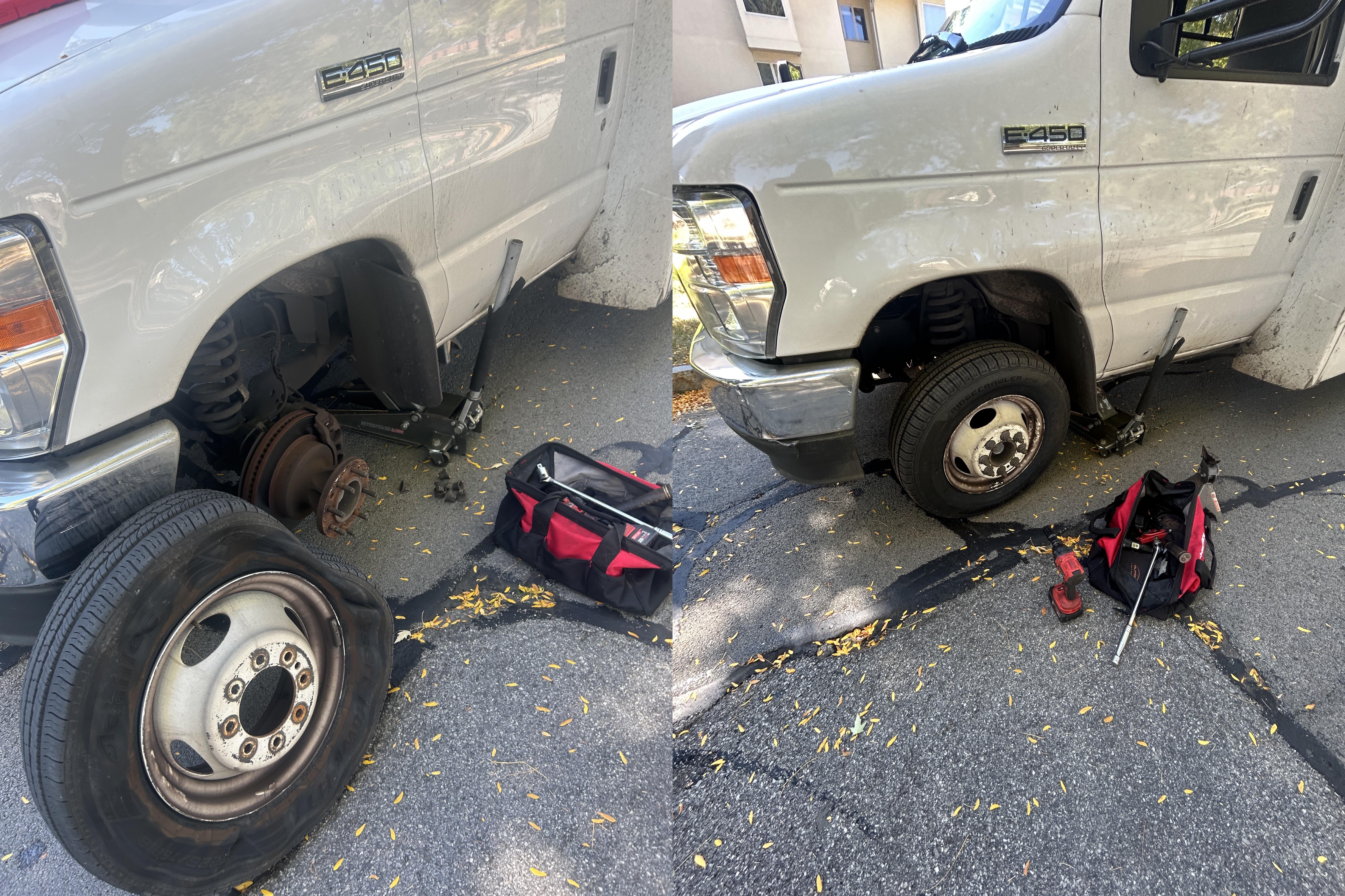 - Our technician safely removes the flat tire and installs your spare.